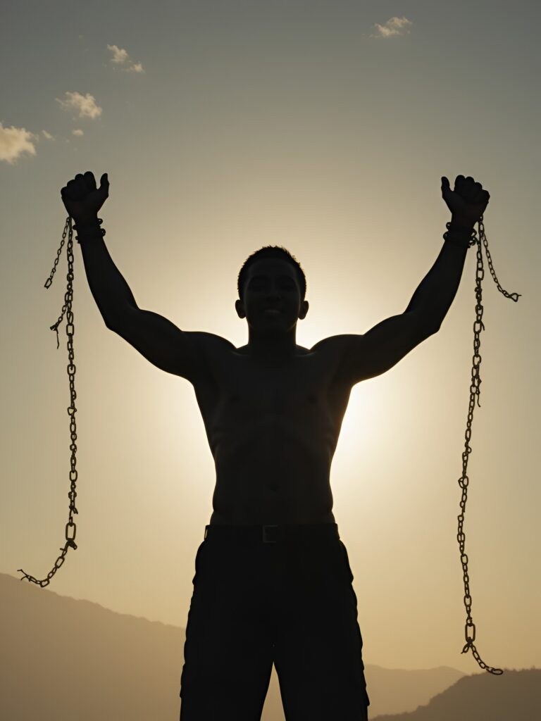 Victory over hardship comes when chains are broken and hands are raised in strength, freedom, and new beginnings.